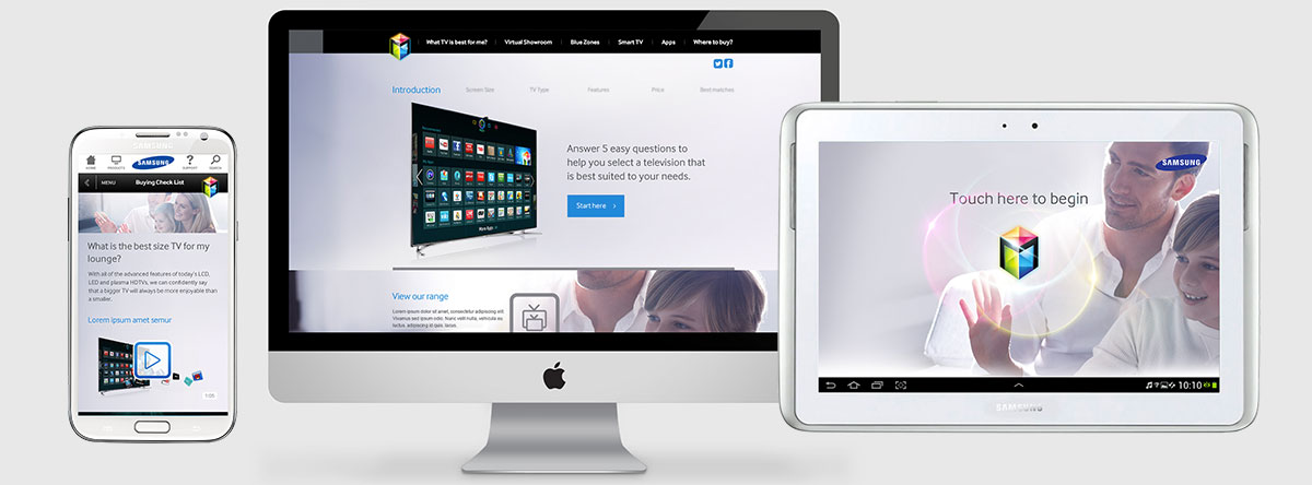 To introduce their latest product range in home entertainment, Samsung created a Point of Interest Interactive Hub that helps consumers to make the right choice when they are looking for a TV or hifi component. A Samsung Galaxy Note is linked to a TV screen which displays content corresponding to the users' selection. The launch campaign was a great success. Sales went up across the country and Samsung is widely recognised as industry leader. View individual screens of the Point of Interest Selection tablet below.